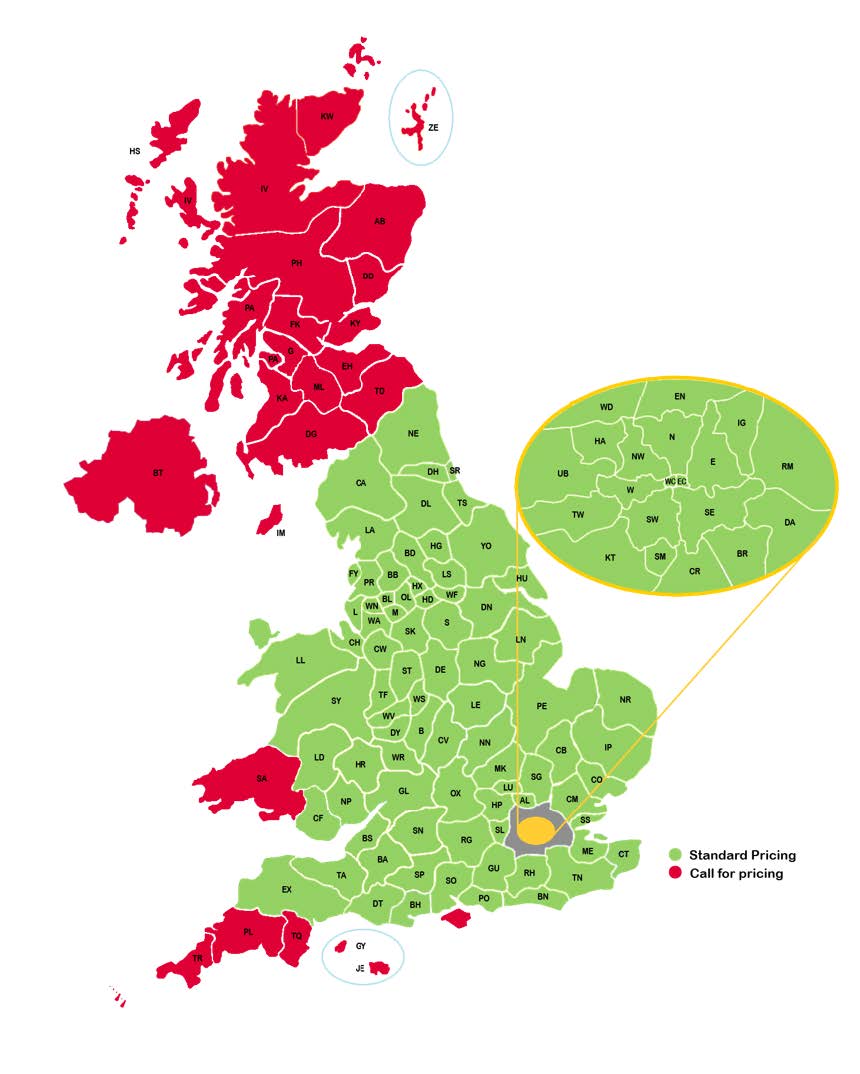 Our service engineers cover all of the UK, with most areas falling within our standard pricing offering.